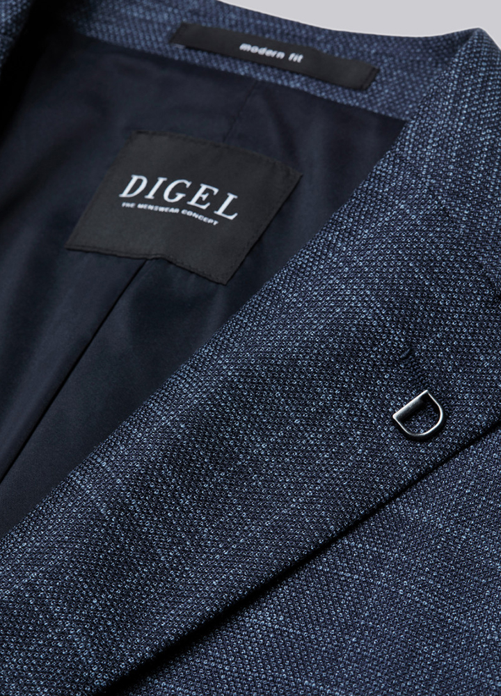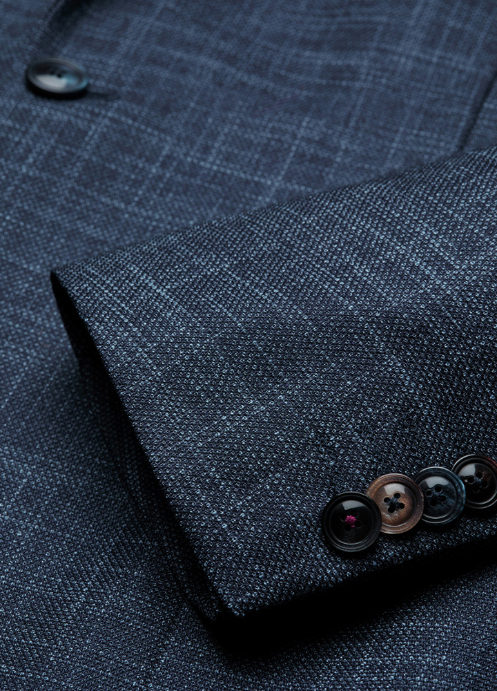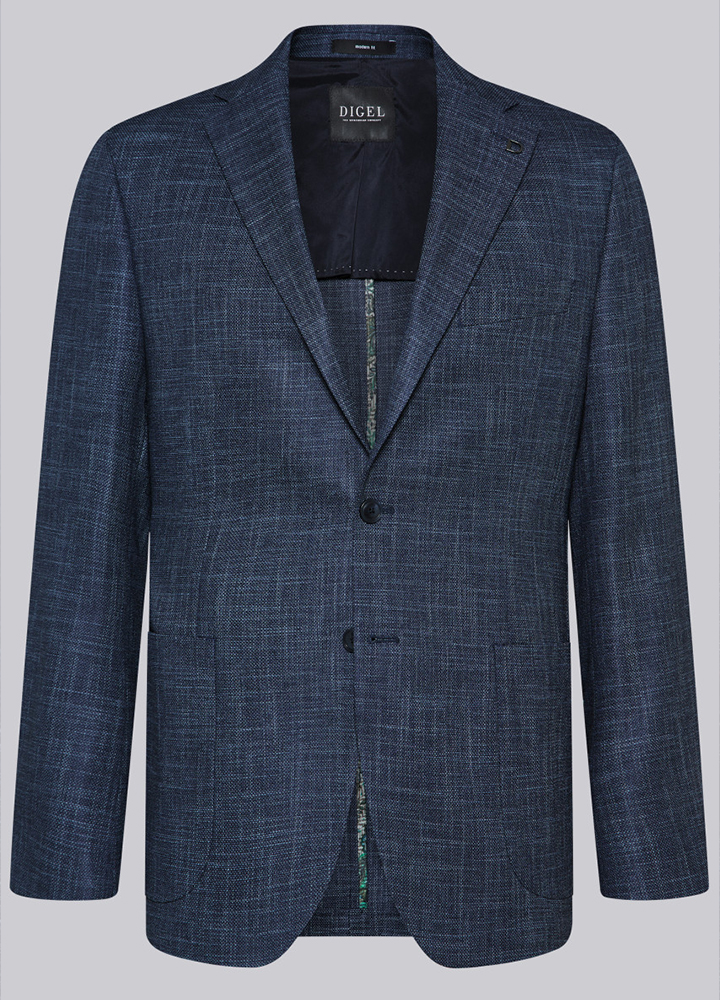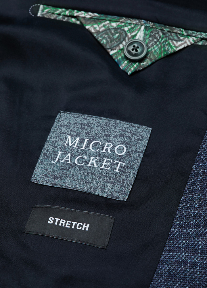 Les vestons en jersey stretch à grands carreaux, coupe moderne, harmonie bleutée